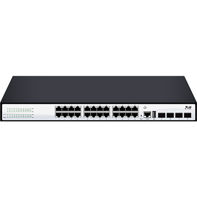可網管28口千兆交換機24個千兆電口下行4個萬兆SFP+端口上行零配置上線4kv端口防雷19寸鐵殼外觀支持機架安裝支持CLI/WEB管理支持云管理